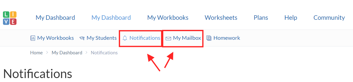 Como primer paso recuerda revisar las notificaciones en el sitio de Liveworksheets, por favor revisa la captura de pantalla que adjunto. Si no están allí las notificaciones, por favor contáctanos via ticket interno para poder revisar tu caso https://www.liveworksheets.com/contact