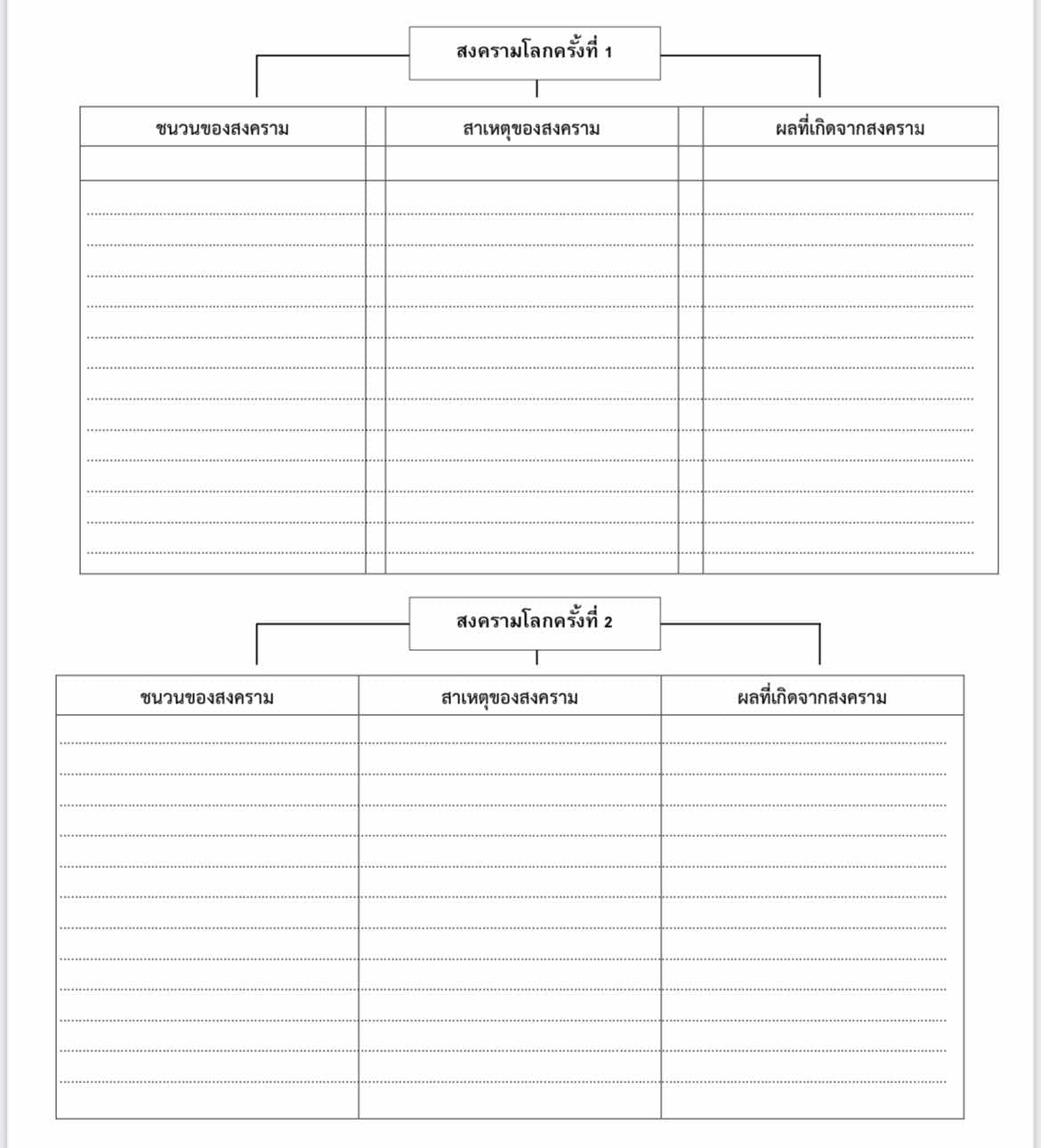 -- เรียกดูหมวดหมู่ประวัติศาสตร์บน Liveworksheets.com คุณอาจพบเอกสารประกอบการสอนที่ครอบคลุมถึงความขัดแย้งในโลกภายในหัวข้อประวัติศาสตร์ที่กว้างขึ้น