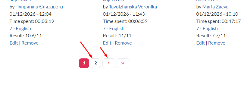 Besides I can see only one page with works if I choose a concrete exercise, I can`t switch to page 2