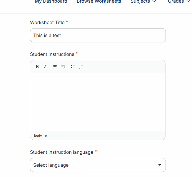 When creating a worksheet, the field "add instructions" does not show text box to write the instructions, so the system does not allow to create a worksheet.