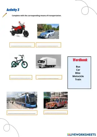 Activity 3 Means of transport Wordbank