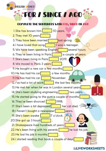 FOR / SONCE / AGO