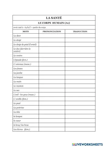 RÉVISION: AVOIR MAL À + PARTIES DU CORPS (A1-A2)