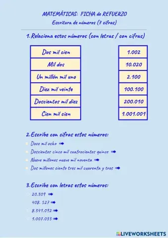 ESCRITURA DE NÚMEROS CIFRAS y LETRAS