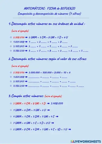 COMPOSICIÓN y DESCOMPOSICIÓN DE NÚMEROS