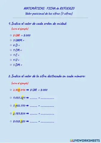 SISTEMA DE NUMERACIÓN. VALOR POSICIONAL DE LAS CIFRAS.