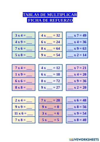 TABLAS DE MULTIPLICAR EXTENDIDAS