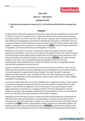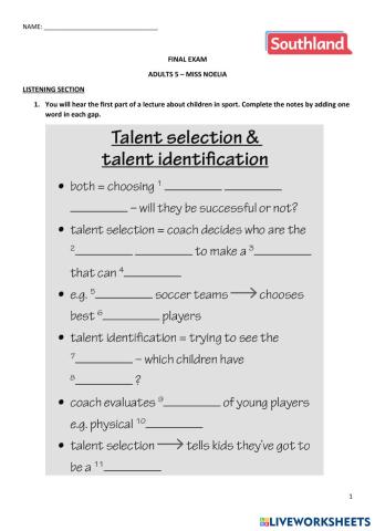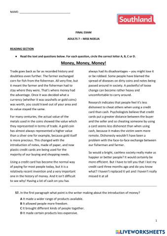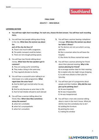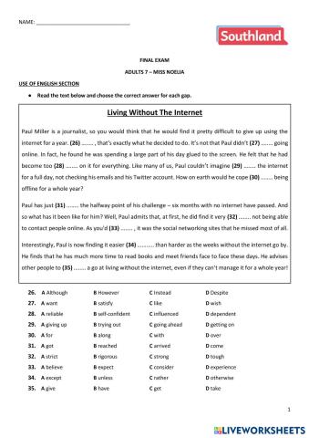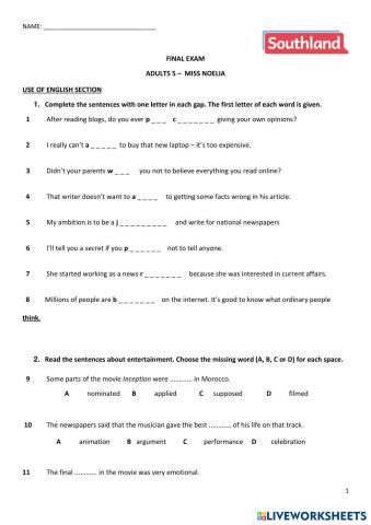 • English as a Second Language (ESL) Final exam - Use of English section - Adults 5 English Level B1+
