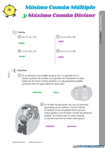 Mínimo Común Múltiplo y Máximo Común Divisor (mcm y MCD)