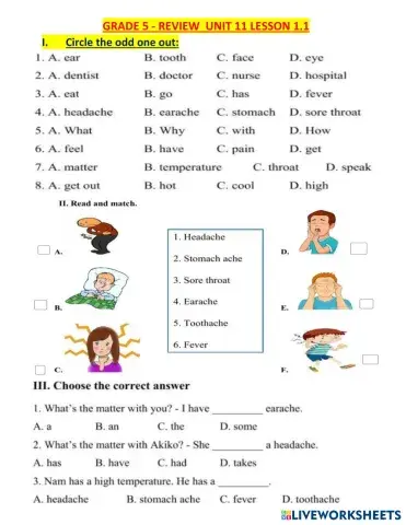 G5-U11 WHAT'S THE MATTER WITH YOU? TEST 1.1