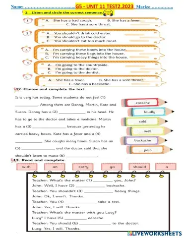G5-U11 WHAT'S THE MATTER WITH YOU? TEST 1.2