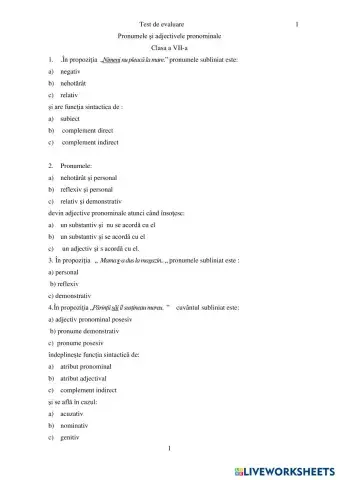 Pronumele și adjectivele pronominale