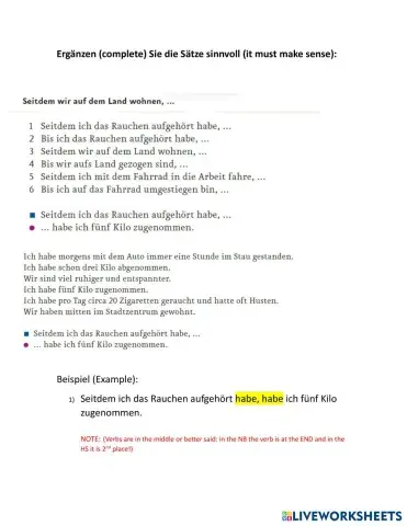 A2.2 Hausaufgabe seitdem, bis