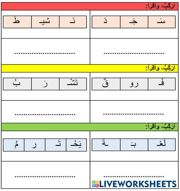 Created bynoor saka ESL Arabic A1 (Principiante) Escritura Arabic Instrucciones del autor ركب المقاطع التالية : My Google Classroom Courses × 0 classes selected (0 students total) Quick Access Select all classes (0 classes) All Classes Loading courses... Cancelar Share Share to selected Course __COURSE_NAME__ __STUDENT_NAME__ (__STUDENT_EMAIL__) ورقة عمل التركيب للمستويات Descargar Worksheet Validation Comprobar mis respuestas Emails my answers to my teacher Nombre completo Group/level Asignatura Teacher's email or key code Close Submit Validating worksheet... (12) Your answers have been sent to your teacher. Good luck! OK We encountered an error submitting your answers. Please try again. OK Anuncio | Ir sin anuncios Created bynoor saka ESL Arabic A1 (Principiante) Escritura Arabic Instrucciones del autor ركب المقاطع التالية : Explora las hojas de trabajo الأسماء الموصولة ESL A1 الأسماء الموصولة Writing - ESL للصف الثاني حل ورقة العمل ESL A1 حل ورقة العمل Writing - ESL حل وارسل على الشات حل ورقة العمل ESL A1 حل ورقة العمل Writing - ESL حل وارسل على الشات حل ورقة العمل ESL A1 حل ورقة العمل Writing - ESL حل وارسل على الشات