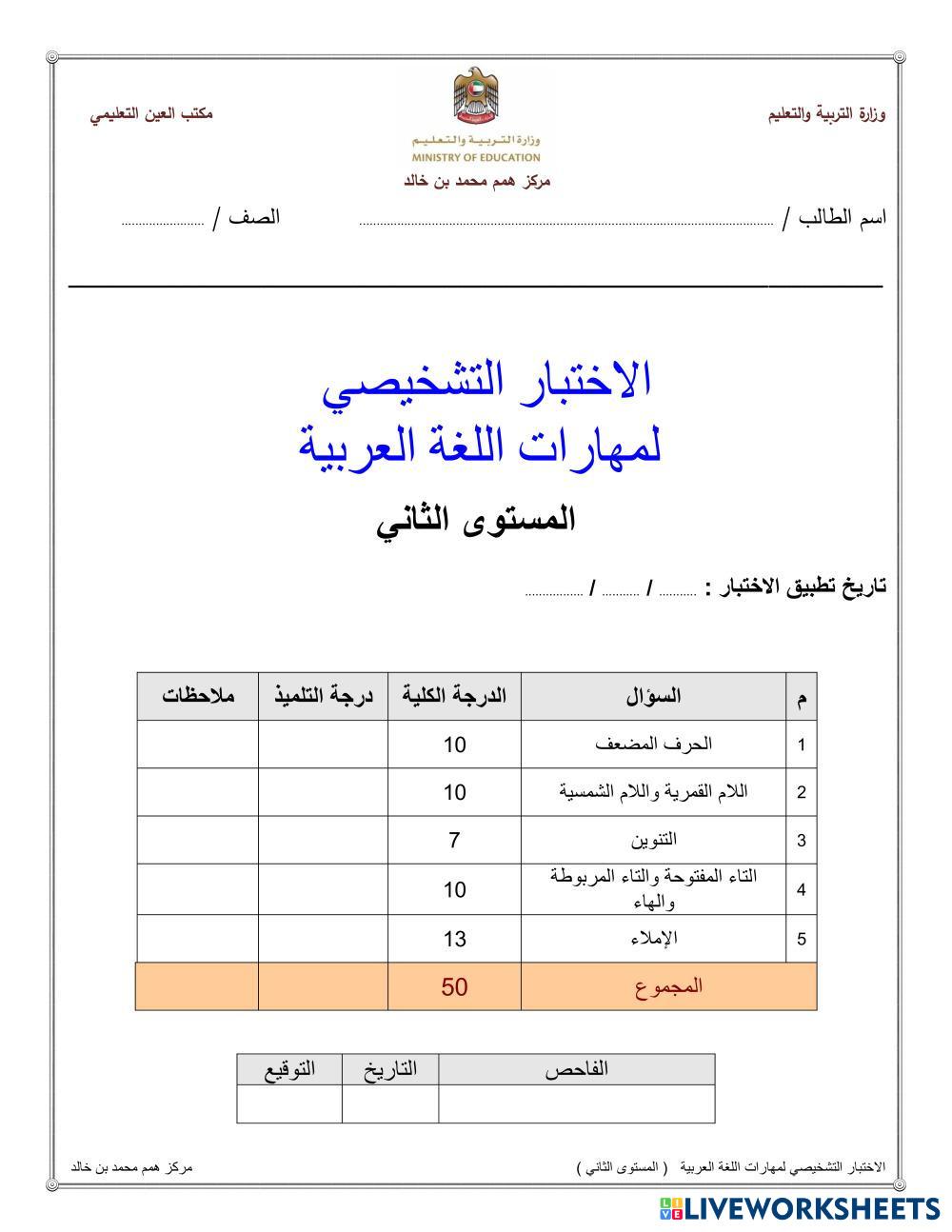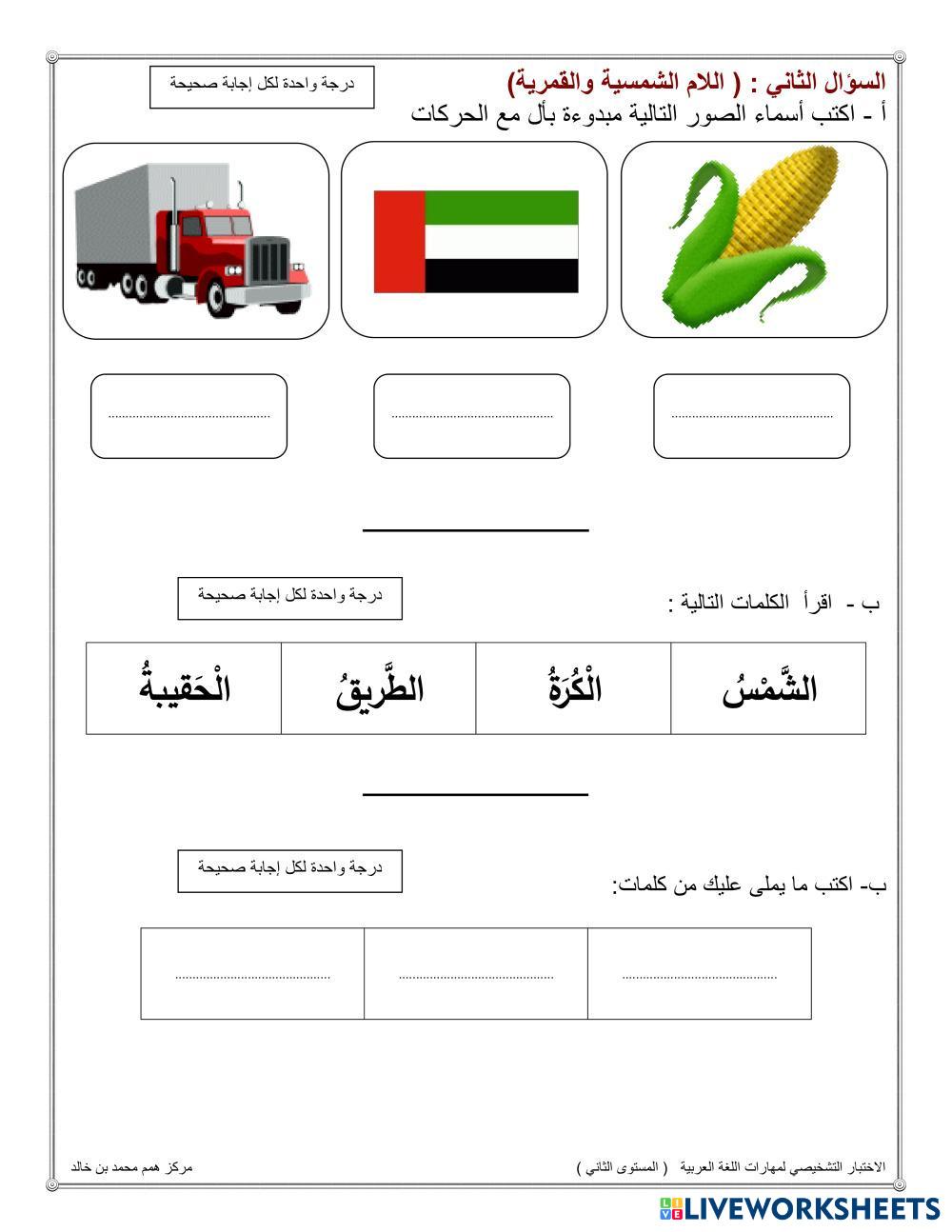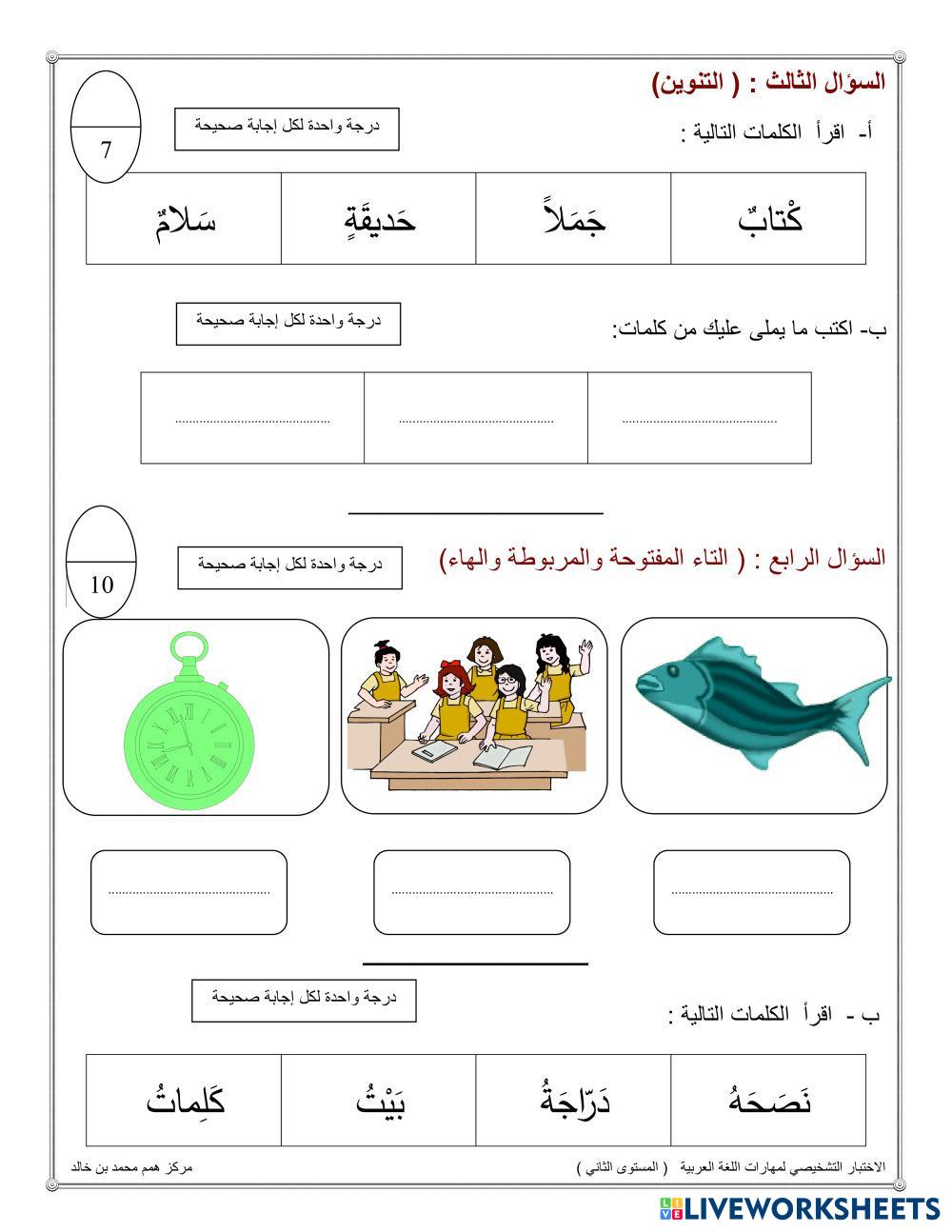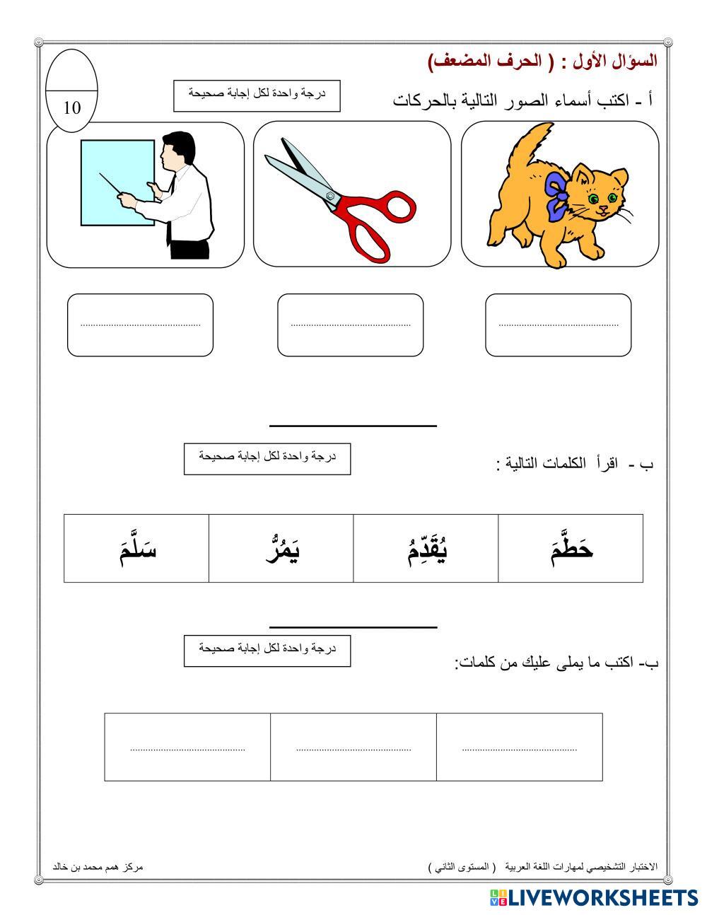 Created byMouza ali alderei ESL Arabic A2 (Básico) Escritura Arabic Instrucciones del autor يرجى حل الاسئلة التالية My Google Classroom Courses × 0 classes selected (0 students total) Quick Access Select all classes (0 classes) All Classes Loading courses... Cancelar Share Share to selected Course __COURSE_NAME__ __STUDENT_NAME__ (__STUDENT_EMAIL__) الاختبار التشخيصي للغة العربية المستوى الثاني Descargar Worksheet Validation Comprobar mis respuestas Emails my answers to my teacher Nombre completo Group/level Asignatura Teacher's email or key code Close Submit Validating worksheet... (12) Your answers have been sent to your teacher. Good luck! OK We encountered an error submitting your answers. Please try again. OK Anuncio | Ir sin anuncios Created byMouza ali alderei ESL Arabic A2 (Básico) Escritura Arabic Instrucciones del autor يرجى حل الاسئلة التالية Explora las hojas de trabajo الإنتاج الكتابي ESL A2 الإنتاج الكتابي Writing - ESL عزيزتي الطالبة اقرئي السؤال جيدًا ثم أجيبي عنه الرفق بالحيوان ESL A2 الرفق بالحيوان Writing - ESL اكمل الفراغات مراجعة خامس وسادس ESL A2 مراجعة خامس وسادس Writing - ESL مراجعة منتصف الفصل الدراسي الثاني سورة النبأ ESL A2 سورة النبأ Writing - ESL .