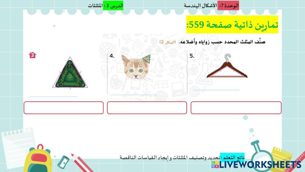 Created by Amna97 Matemáticas Educación Secundaria Obligatoria 1º de ESO Geometría Arabic Instrucciones del autor تصنيف المثلثات My Google Classroom Courses × 0 classes selected (0 students total) Quick Access Select all classes (0 classes) All Classes Loading courses... Cancelar Share Share to selected Course __COURSE_NAME__ __STUDENT_NAME__ (__STUDENT_EMAIL__) المثلثات Descargar Worksheet Validation Comprobar mis respuestas Emails my answers to my teacher Nombre completo Group/level Asignatura Teacher's email or key code Close Submit Validating worksheet... (12) Your answers have been sent to your teacher. Good luck! OK We encountered an error submitting your answers. Please try again. OK Anuncio | Ir sin anuncios Created by Amna97 Matemáticas Educación Secundaria Obligatoria 1º de ESO Geometría Arabic Instrucciones del autor تصنيف المثلثات Explora las hojas de trabajo زوايا المثلث Math 7th grade زوايا المثلث Geometry - Math ايجاد الزاوية الناقصة في مثلث LKPD Sudut Berpenyiku, Berpelurus dan Bertolakbelakang Math 7th grade LKPD Sudut Berpenyiku, Berpelurus dan Bertolakbelakang Geometry - Math Jawablah pertanyaan berikut dengan mengisi bagian kotak pada soal. المستقيمات المتوازية والزوايا Math 7th grade المستقيمات المتوازية والزوايا Geometry - Math اسحب لتربح الانسحاب Math 7th grade الانسحاب Geometry - Math الانسحاب