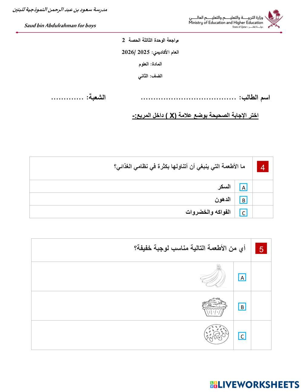 عليك عزيزي الطالب حل الاسئلة التالية