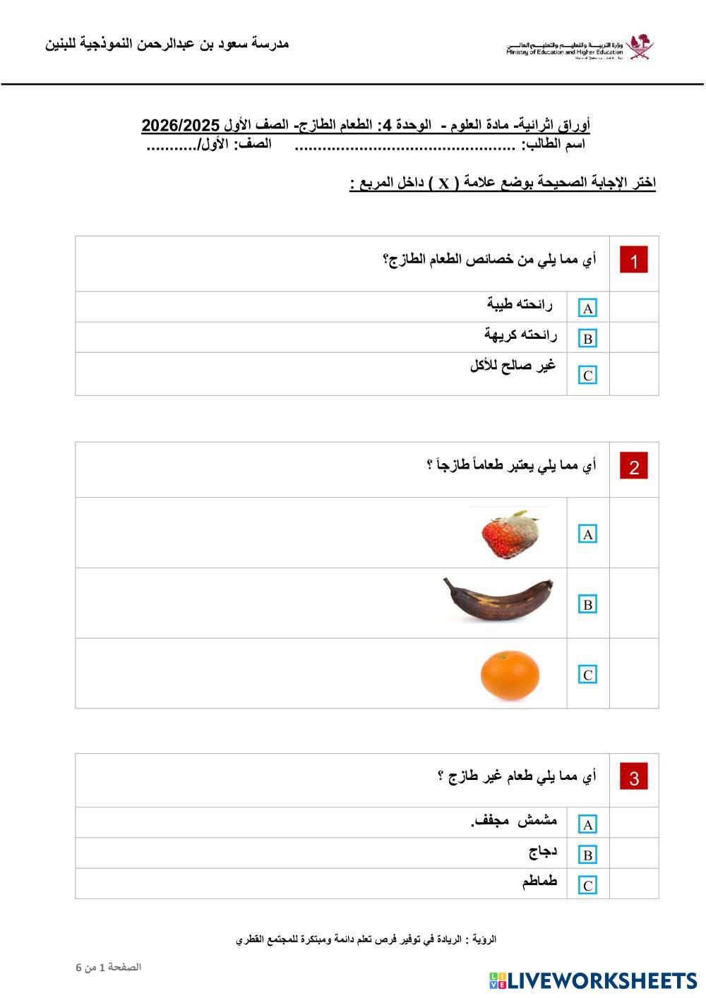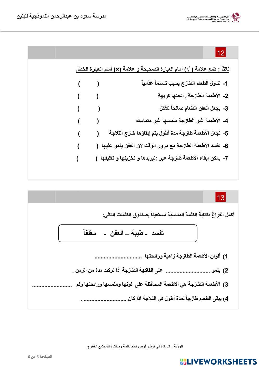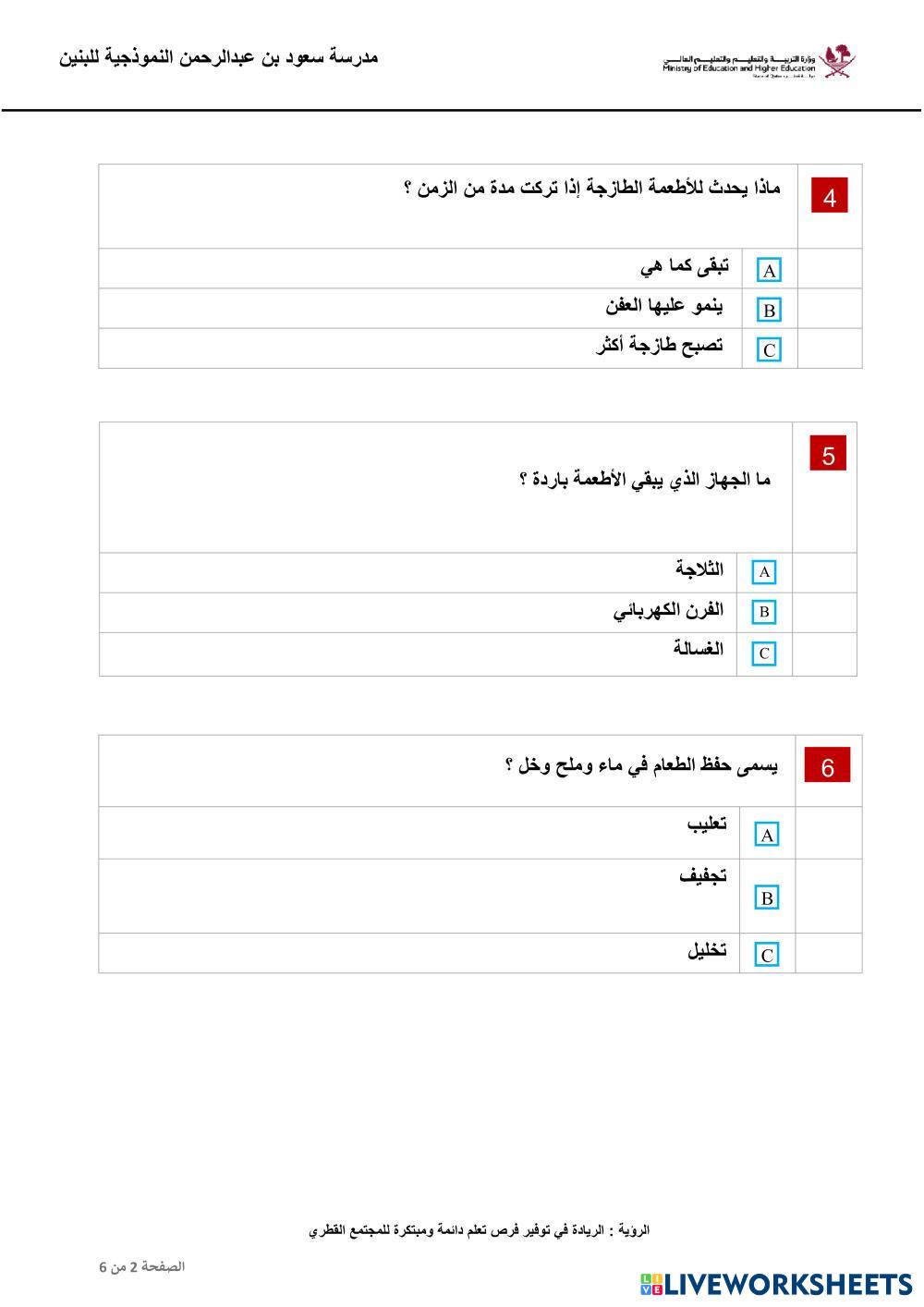 مراجعة الوحدة الرابعة الطعام الطازج ج2