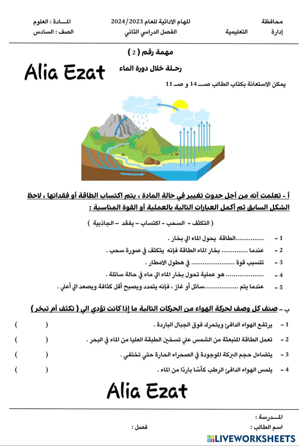Created byAlia Ezat science exercises Edad 10-17 level: six Arabic Instrucciones del autor My Google Classroom Courses × 0 classes selected (0 students total) Quick Access Select all classes (0 classes) All Classes Loading courses... Cancelar Share Share to selected Course __COURSE_NAME__ __STUDENT_NAME__ (__STUDENT_EMAIL__) مهمة أدائية علوم للصف السادس الإبتدائي 2024 مع علياء عزت Descargar Worksheet Validation Comprobar mis respuestas Emails my answers to my teacher Nombre completo Group/level Asignatura Teacher's email or key code Close Submit Validating worksheet... (12) Your answers have been sent to your teacher. Good luck! OK We encountered an error submitting your answers. Please try again. OK Anuncio | Ir sin anuncios Created byAlia Ezat science exercises Edad 10-17 level: six Arabic Instrucciones del autor
