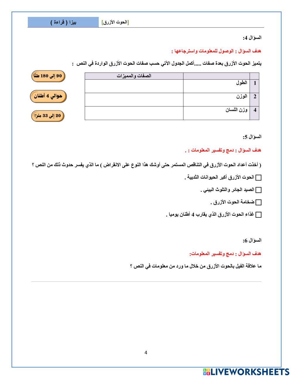 اقرأ النص جيدًا ثم أجِب عن الأسئلة التي تليه. يشتمل النشاط على أسئلة اختيار متعددة وترتيب الأفكار وفهم المعلومات الواردة في النص.