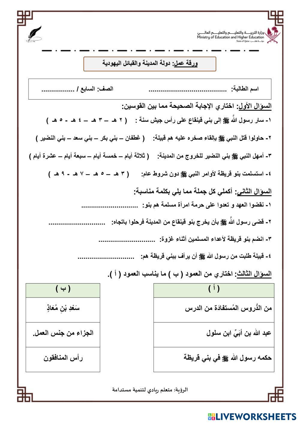 ورقة عمل -مراجعة السيرة