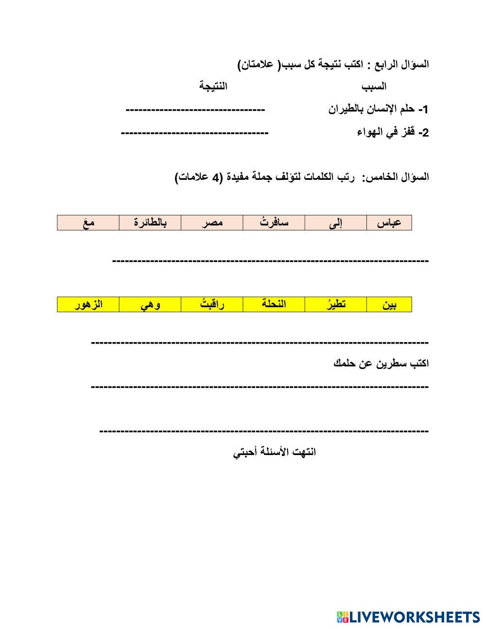 Created byeman test comphrehention Edad 7-13 level: 2th Arabic Instrucciones del autor 4 question My Google Classroom Courses × 0 classes selected (0 students total) Quick Access Select all classes (0 classes) All Classes Loading courses... Cancelar Share Share to selected Course __COURSE_NAME__ __STUDENT_NAME__ (__STUDENT_EMAIL__) test Descargar Worksheet Validation Comprobar mis respuestas Emails my answers to my teacher Nombre completo Group/level Asignatura Teacher's email or key code Close Submit Validating worksheet... (12) Your answers have been sent to your teacher. Good luck! OK We encountered an error submitting your answers. Please try again. OK Anuncio | Ir sin anuncios Created byeman test comphrehention Edad 7-13 level: 2th Arabic Instrucciones del autor 4 question