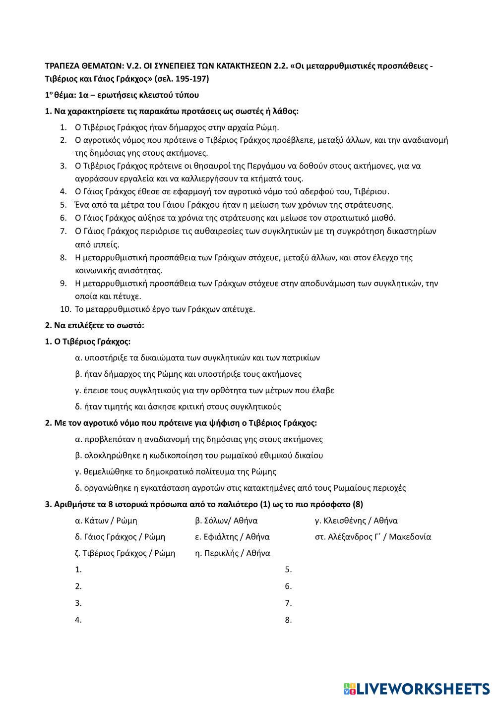 Ασκήσεις τράπεζας θεμάτων κλειστού τύπου.