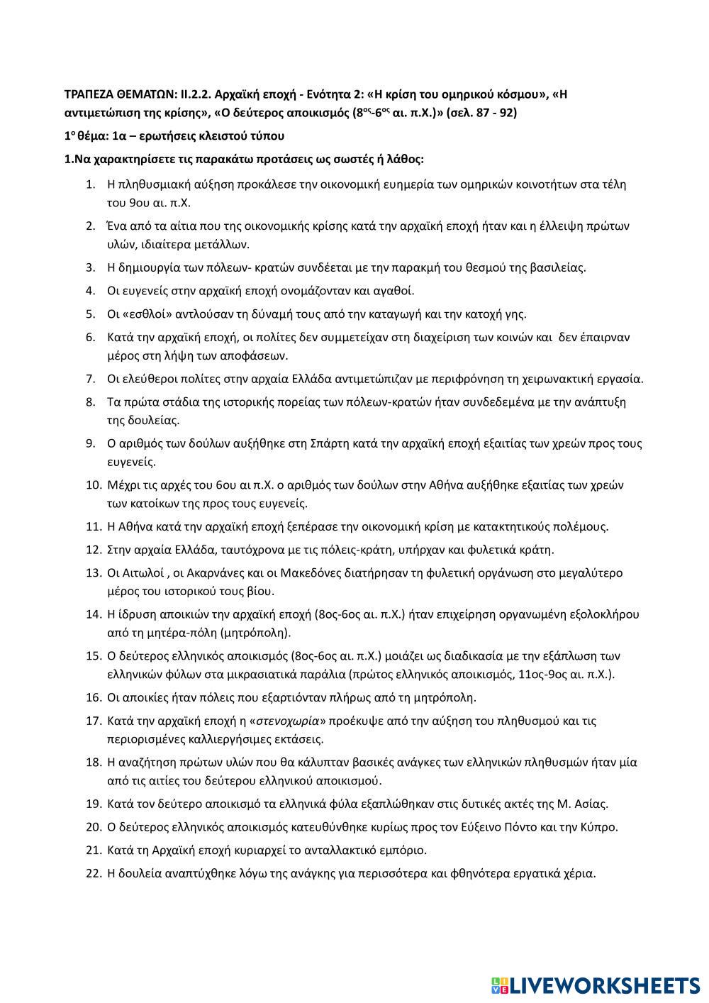 Created bysofia karataki Ciencias Sociales Bachillerato 4º de ESO Historia Greek (modern) Instrucciones del autor Ασκήσεις κλειστού τύπου της τράπεζας θεμάτων My Google Classroom Courses × 0 classes selected (0 students total) Quick Access Select all classes (0 classes) All Classes Loading courses... Cancelar Share Share to selected Course __COURSE_NAME__ __STUDENT_NAME__ (__STUDENT_EMAIL__) Αρχαϊκή εποχή-Ενότητα 2: Η κρίση του ομηρικού κόσμου, Η αντιμετώπιση της κρίσης, Δεύτερος αποικισμός (σελ.87-92)) Descargar Worksheet Validation Comprobar mis respuestas Emails my answers to my teacher Nombre completo Group/level Asignatura Teacher's email or key code Close Submit Validating worksheet... (12) Your answers have been sent to your teacher. Good luck! OK We encountered an error submitting your answers. Please try again. OK Anuncio | Ir sin anuncios Created bysofia karataki Ciencias Sociales Bachillerato 4º de ESO Historia Greek (modern) Instrucciones del autor Ασκήσεις κλειστού τύπου της τράπεζας θεμάτων Explora las hojas de trabajo Khái niệm và cơ sở hình thành Social Studies 10th grade Khái niệm và cơ sở hình thành History - Social Studies hihi Ý nghĩa văn minh Đại Việt Social Studies 10th grade Ý nghĩa văn minh Đại Việt History - Social Studies hihi Kinh tế Đại Việt Social Studies 10th grade Kinh tế Đại Việt History - Social Studies sdeff Kinh tế Đại Việt Social Studies 10th grade Kinh tế Đại Việt History - Social Studies sdeff