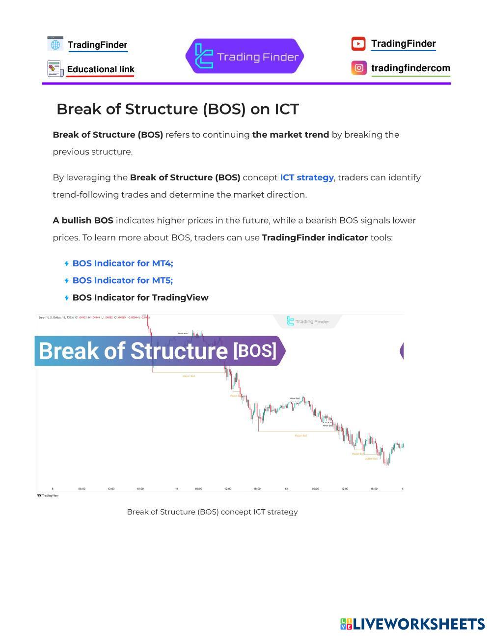 A bullish BOS indicates higher prices in the future, while a bearish BOS signals lower prices. To learn more about BOS, traders can use TradingFinder indicator tools: