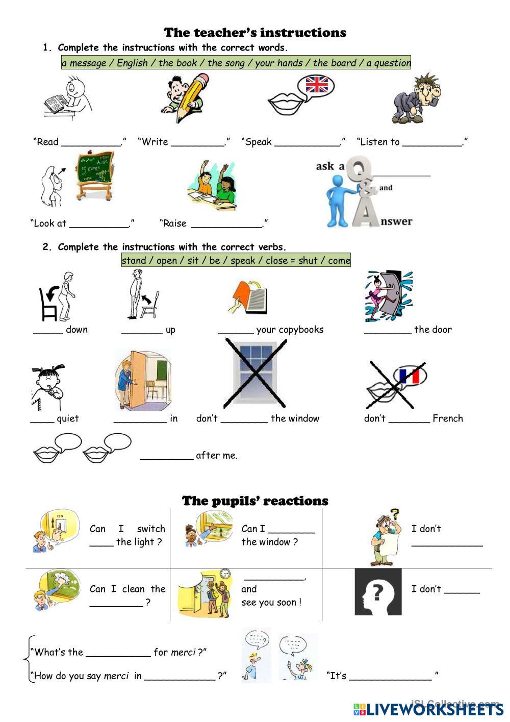 in this activity the students must be able to complete activities related to classroom commands