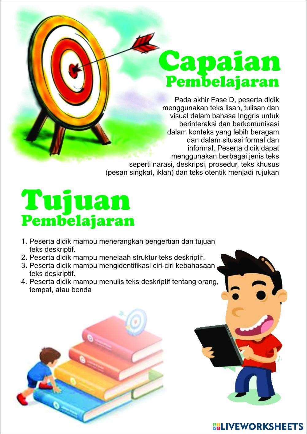 Created by mamwahyu Descriptive Text Descriptive Text Edad 10+ level: 8 English Instrucciones del autor My Google Classroom Courses × 0 classes selected (0 students total) Quick Access Select all classes (0 classes) All Classes Loading courses... Cancelar Share Share to selected Course __COURSE_NAME__ __STUDENT_NAME__ (__STUDENT_EMAIL__) LKPD descriptive text Descargar Worksheet Validation Comprobar mis respuestas Emails my answers to my teacher Nombre completo Group/level Asignatura Teacher's email or key code Close Submit Validating worksheet... (12) Your answers have been sent to your teacher. Good luck! OK We encountered an error submitting your answers. Please try again. OK Anuncio | Ir sin anuncios Created by mamwahyu Descriptive Text Descriptive Text Edad 10+ level: 8 English Instrucciones del autor