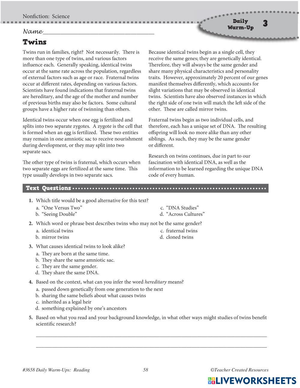 Created byLENGIFY ENGLISH Lengua y Literatura Educación Infantil Guardería Habilidades de Lectura Temprana English Instrucciones del autor solve My Google Classroom Courses × 0 classes selected (0 students total) Quick Access Select all classes (0 classes) All Classes Loading courses... Cancelar Share Share to selected Course __COURSE_NAME__ __STUDENT_NAME__ (__STUDENT_EMAIL__) sheet Descargar Worksheet Validation Comprobar mis respuestas Emails my answers to my teacher Nombre completo Group/level Asignatura Teacher's email or key code Close Submit Validating worksheet... (12) Your answers have been sent to your teacher. Good luck! OK We encountered an error submitting your answers. Please try again. OK Anuncio | Ir sin anuncios Created byLENGIFY ENGLISH Lengua y Literatura Educación Infantil Guardería Habilidades de Lectura Temprana English Instrucciones del autor solve Explora las hojas de trabajo 1234567 English Language Pre-K 1234567 Early Reading Skills - English Language connect from together Alphabets English Language Pre-K Alphabets Early Reading Skills - English Language Circle the correct answer Reading English Language Pre-K Reading Early Reading Skills - English Language Write down the correct word Writing skills practice: A postcard from New York – exercises English Language Pre-K Writing skills practice: A postcard from New York – exercises Early Reading Skills - English Language Read the postcard and answer the questions.