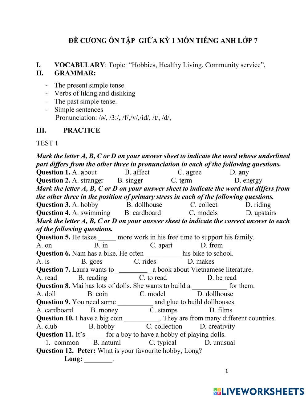 Created byMs SUNNY English Language Middle School 7th grade Grammar English Author's Instructions nothing My Google Classroom Courses × 0 classes selected (0 students total) Quick Access Select all classes (0 classes) All Classes Loading courses... Cancelar Share Share to selected Course __COURSE_NAME__ __STUDENT_NAME__ (__STUDENT_EMAIL__) sunny Download Worksheet Validation Comprobar mis respuestas Emails my answers to my teacher Nombre completo Group/level Asignatura Teacher's email or key code Close Submit Validating worksheet... (12) Your answers have been sent to your teacher. Good luck! OK We encountered an error submitting your answers. Please try again. OK Anuncio | Ir sin anuncios Created byMs SUNNY English Language Middle School 7th grade Grammar English Author's Instructions nothing Explore Worksheets ĐC GKI LOP 7 AN DUONG VUONG (25-26) (3) English Language 7th grade ĐC GKI LOP 7 AN DUONG VUONG (25-26) (3) Grammar - English Language practice ĐC GKI LOP 7 AN DUONG VUONG (25-26) (2) English Language 7th grade ĐC GKI LOP 7 AN DUONG VUONG (25-26) (2) Grammar - English Language practice ĐC GKI LOP 7 AN DUONG VUONG (25-26) (1) English Language 7th grade ĐC GKI LOP 7 AN DUONG VUONG (25-26) (1) Grammar - English Language practice Online_Viet Teacher_S7_W13_U1&2_Grammar Revision English Language 7th grade Online_Viet Teacher_S7_W13_U1&2_Grammar Revision Grammar - English Language Online_Viet Teacher_S7_W13_U1&2_Grammar Revision