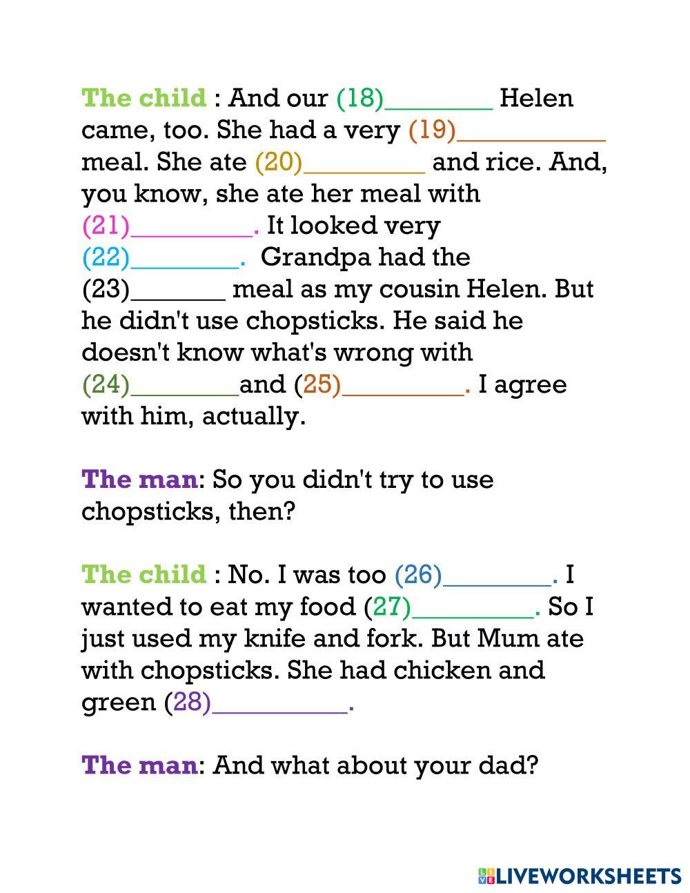 Created by Junoi Lengua y Literatura Educación Primaria 5º de Primaria Gramática English Instrucciones del autor ... My Google Classroom Courses × 0 classes selected (0 students total) Quick Access Select all classes (0 classes) All Classes Loading courses... Cancelar Share Share to selected Course __COURSE_NAME__ __STUDENT_NAME__ (__STUDENT_EMAIL__) FLYERS PRACTICE 8 Descargar Worksheet Validation Comprobar mis respuestas Emails my answers to my teacher Nombre completo Group/level Asignatura Teacher's email or key code Close Submit Validating worksheet... (12) Your answers have been sent to your teacher. Good luck! OK We encountered an error submitting your answers. Please try again. OK Anuncio | Ir sin anuncios Created by Junoi Lengua y Literatura Educación Primaria 5º de Primaria Gramática English Instrucciones del autor ... Explora las hojas de trabajo grammar revision 2 English Language 5th grade grammar revision 2 Grammar - English Language Read and choose the correct answer grammar revision 1 English Language 5th grade grammar revision 1 Grammar - English Language Read and choose the correct answer. SUPERLATIVES English Language 5th grade SUPERLATIVES Grammar - English Language COMPLETE THE EXERCISES revision 3 English Language 5th grade revision 3 Grammar - English Language revision
