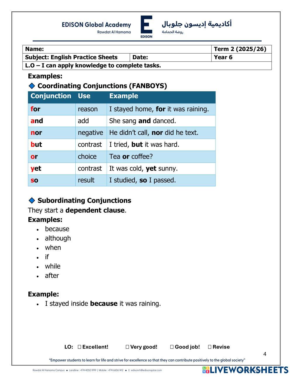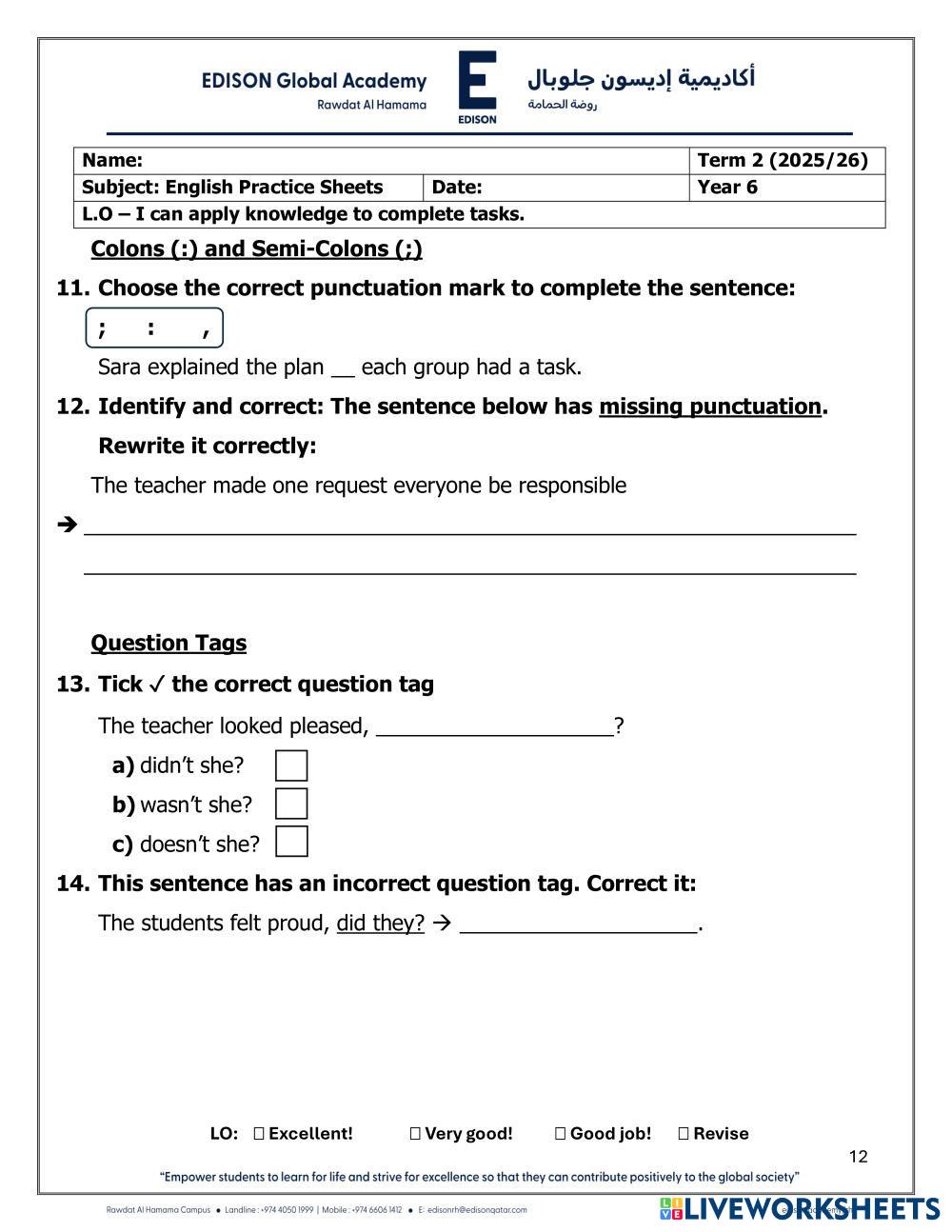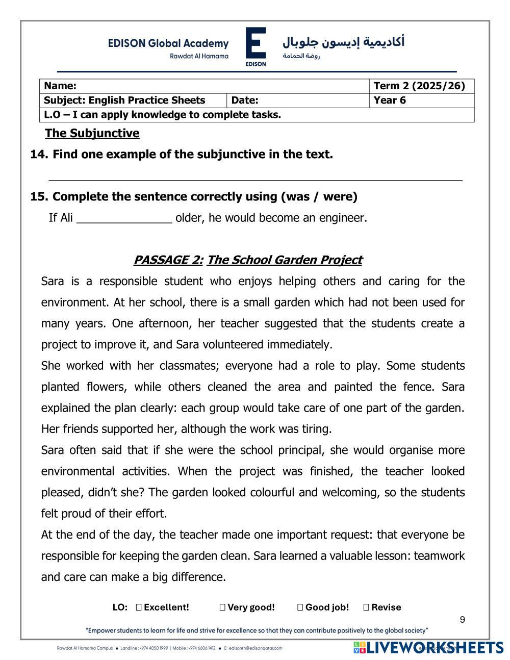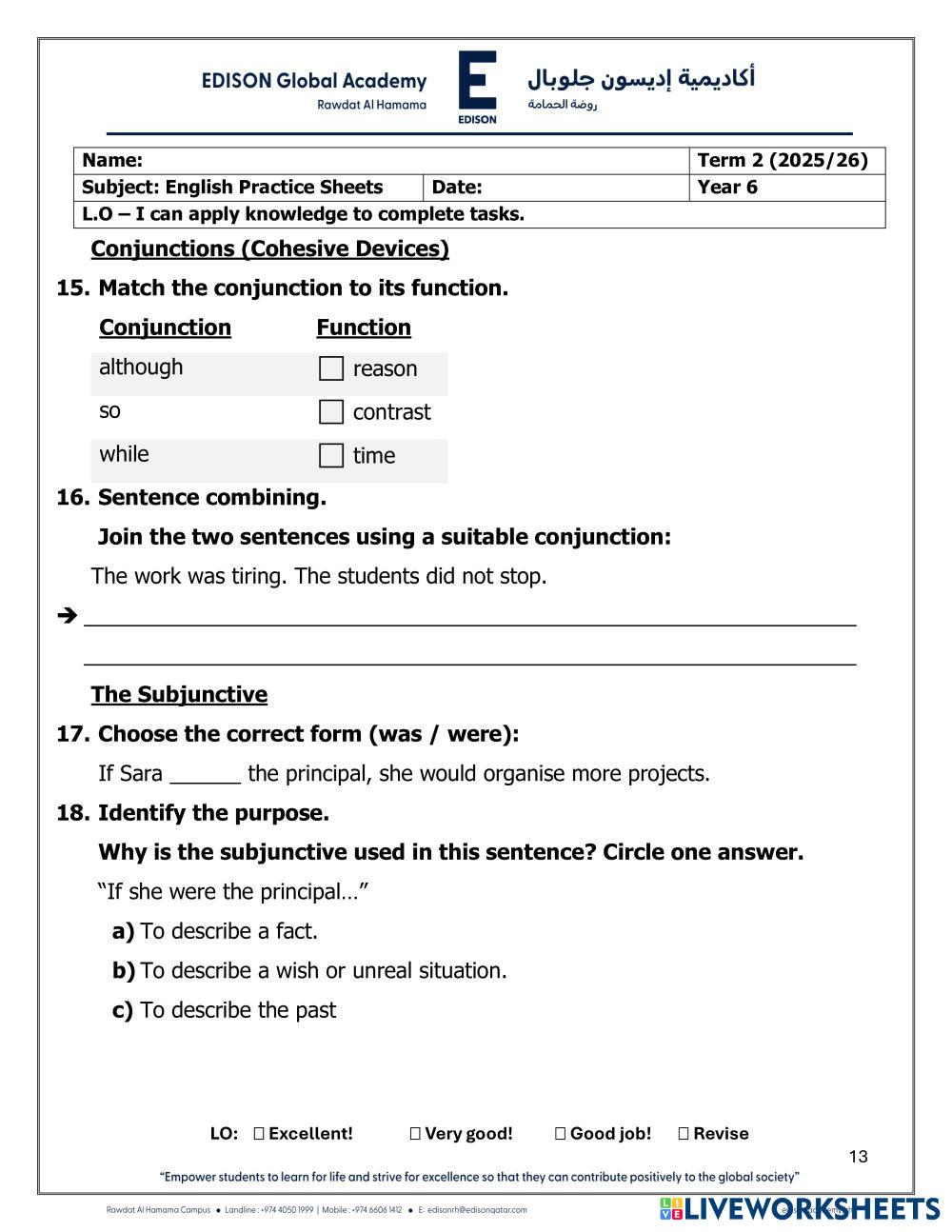 English Practice worksheet - Year 6 - Term 2