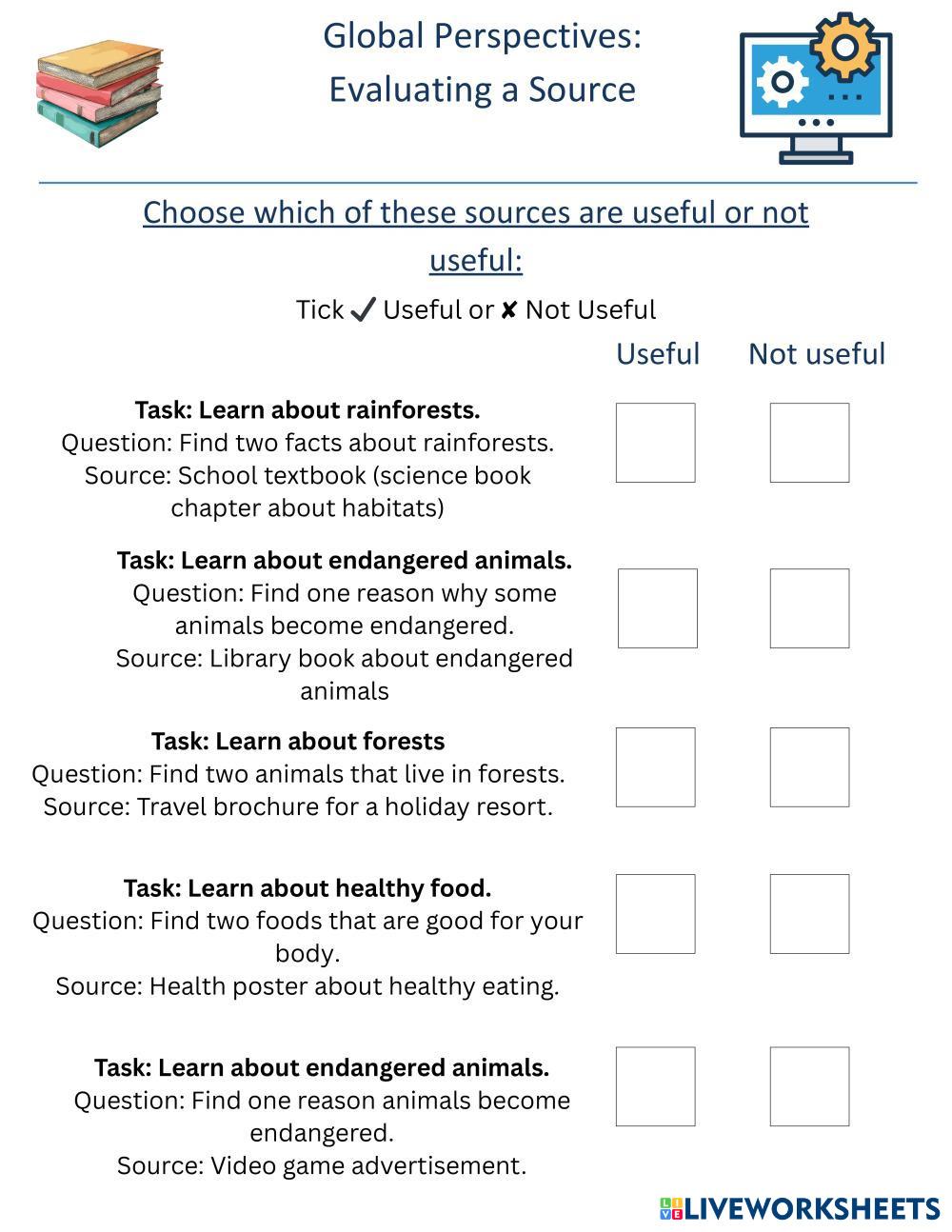 Global Perspectives: Year 4: Evaluation - Problem Solving/ Useful or Not Useful