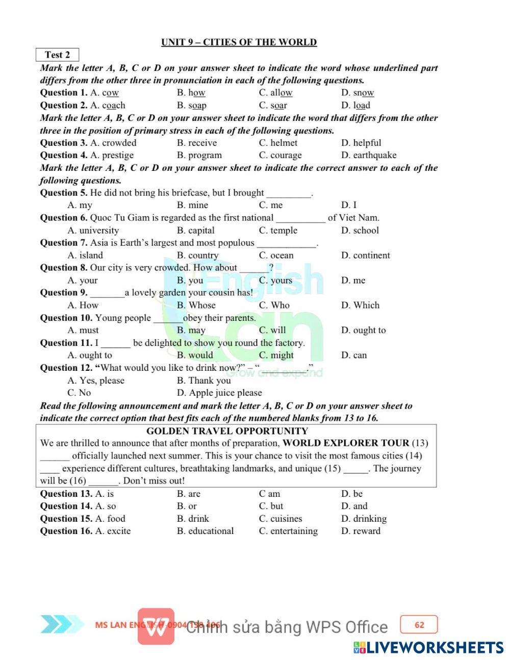 G6- UNIT 9 TEST 2