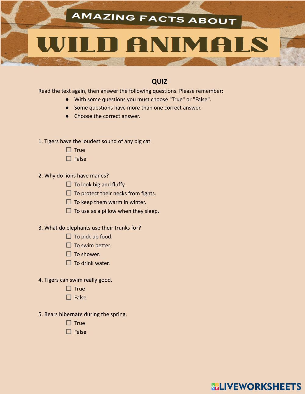 - With some questions you must choose "True" or "False".