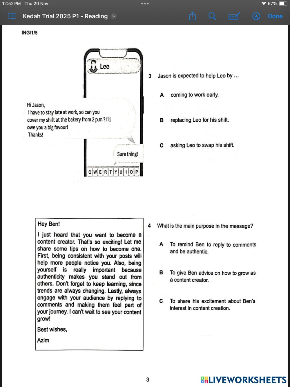 Reading comprehension