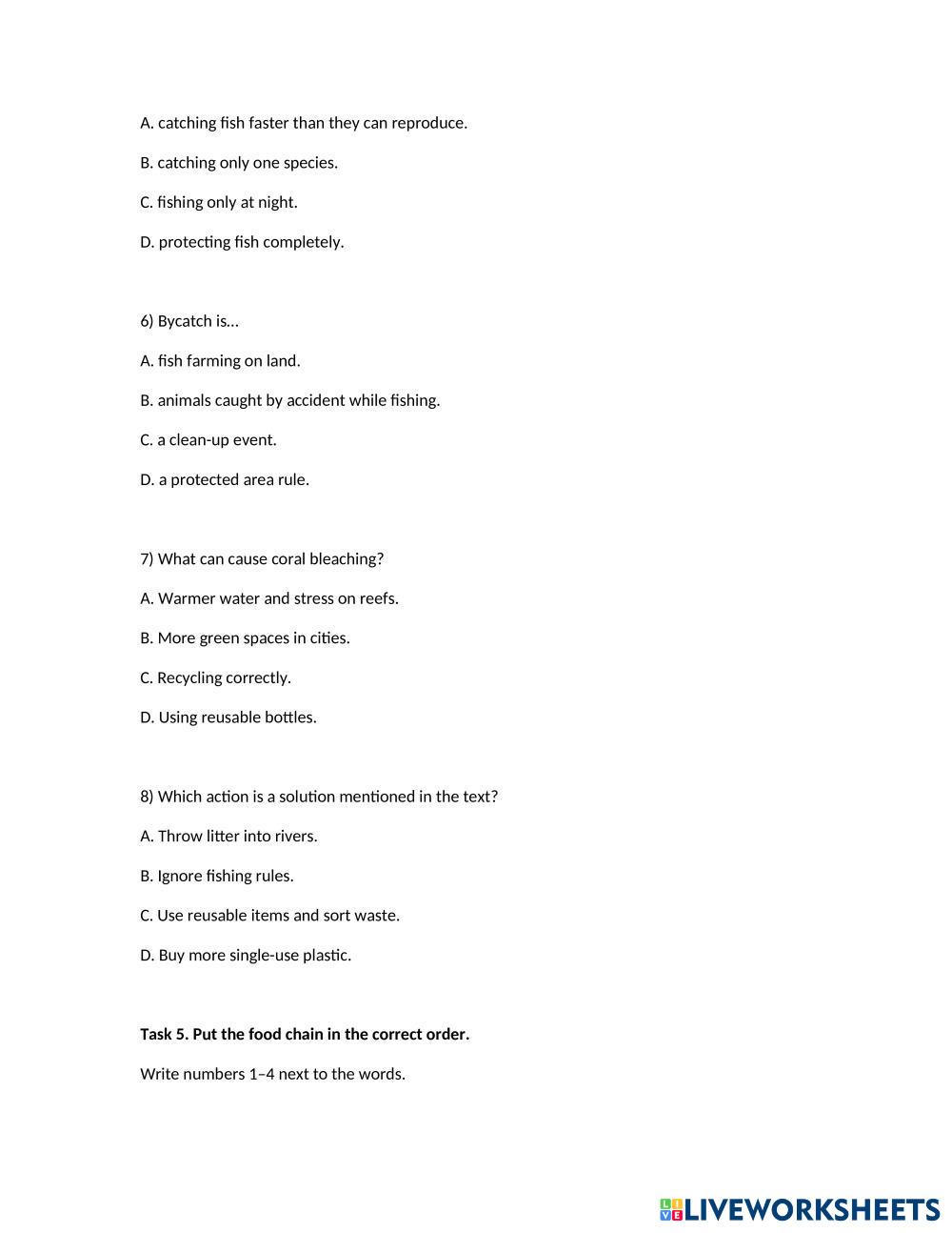 Life below water; Text comprehension