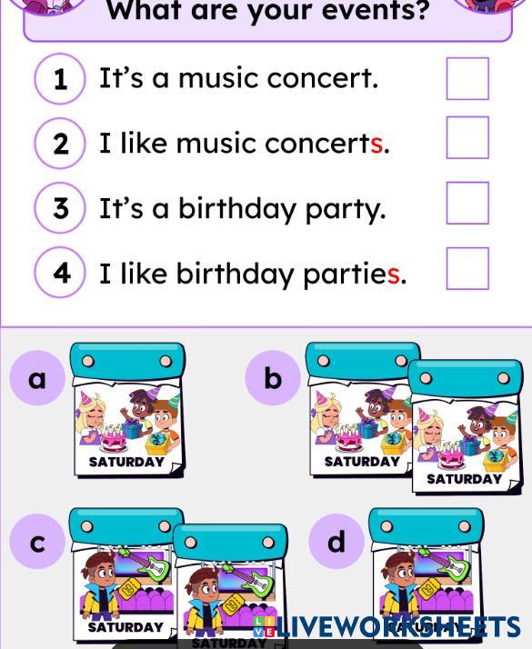 Created byDumanska English Language Elementary 1st grade Vocabulary English Author's Instructions Wypełnij My Google Classroom Courses × 0 classes selected (0 students total) Quick Access Select all classes (0 classes) All Classes Loading courses... Cancelar Share Share to selected Course __COURSE_NAME__ __STUDENT_NAME__ (__STUDENT_EMAIL__) Ola Download Worksheet Validation Comprobar mis respuestas Emails my answers to my teacher Nombre completo Group/level Asignatura Teacher's email or key code Close Submit Validating worksheet... (12) Your answers have been sent to your teacher. Good luck! OK We encountered an error submitting your answers. Please try again. OK Anuncio | Ir sin anuncios Created byDumanska English Language Elementary 1st grade Vocabulary English Author's Instructions Wypełnij Explore Worksheets A1 Movers - Lesson 3 English Language 1st grade A1 Movers - Lesson 3 Vocabulary - English Language Let's review family members and people around us. A1 Movers - Lesson 2 English Language 1st grade A1 Movers - Lesson 2 Vocabulary - English Language Let's practice Colors and Body parts. A1 Movers - Lesson 1 English Language 1st grade A1 Movers - Lesson 1 Vocabulary - English Language Con hoàn thành các bài tập dưới đây để ôn tập lại bài học về Names và Numbers nhé ! A1 Movers - Lesson 4 English Language 1st grade A1 Movers - Lesson 4 Vocabulary - English Language Let's review things at home