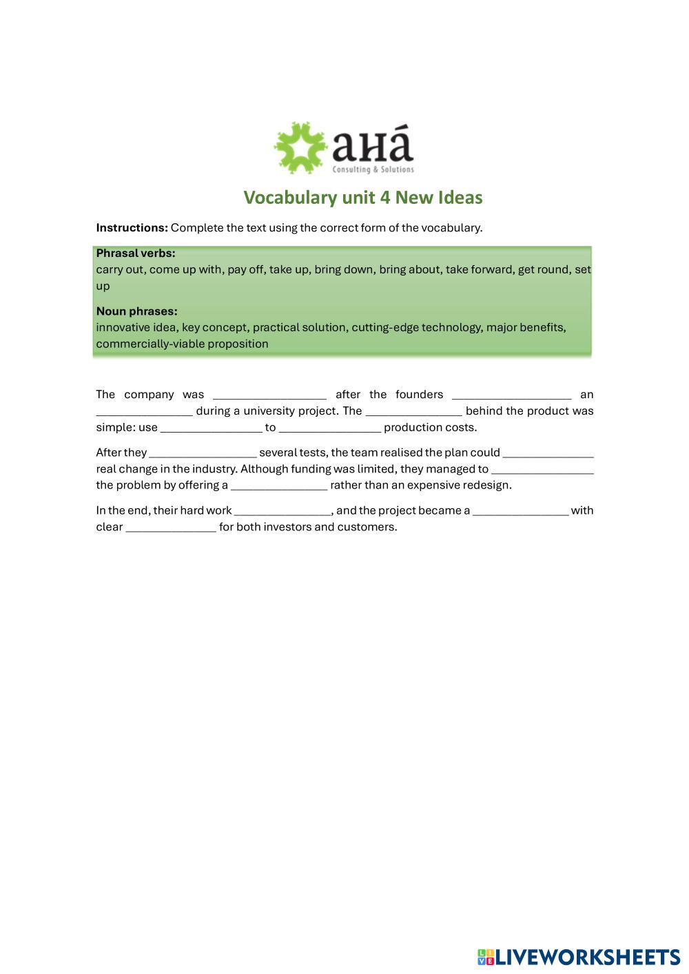 Complete the text using the correct vocabulary phrase or word