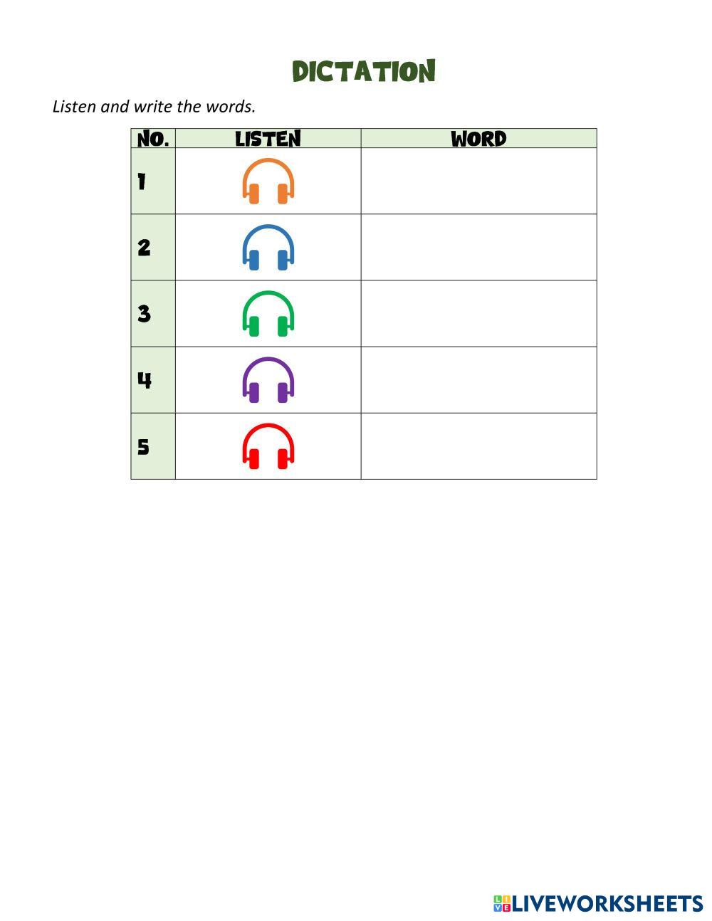 Listen to the words and write them.