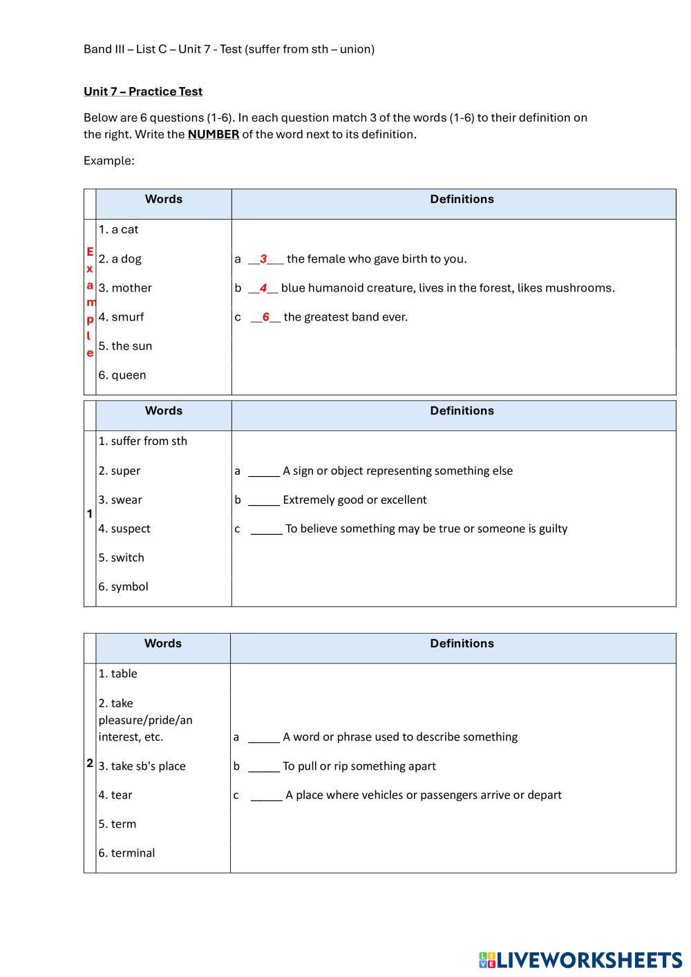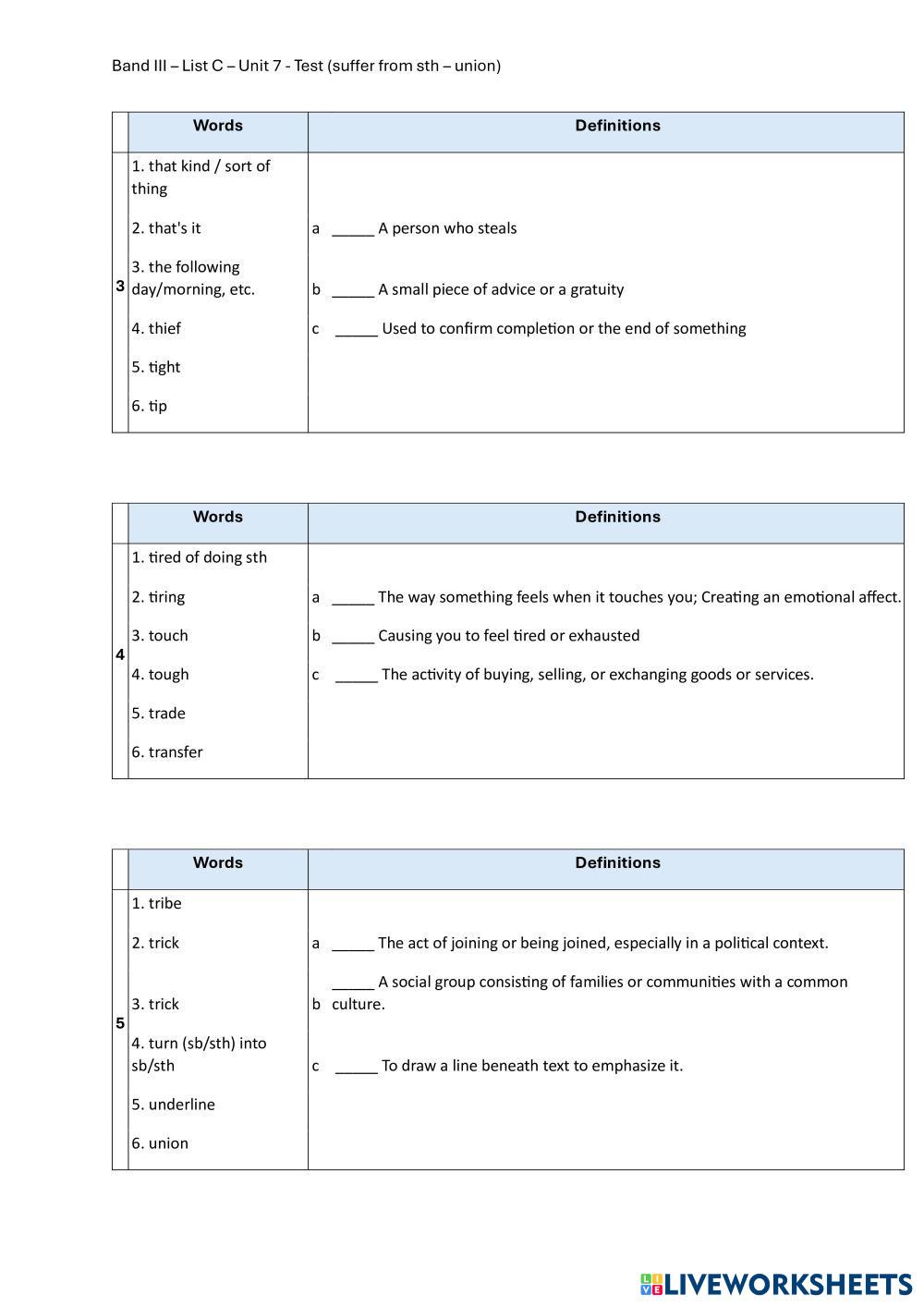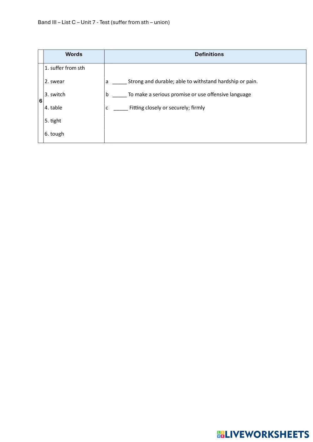 Band III – List C – Unit 7 - Test (suffer from sth – union)
