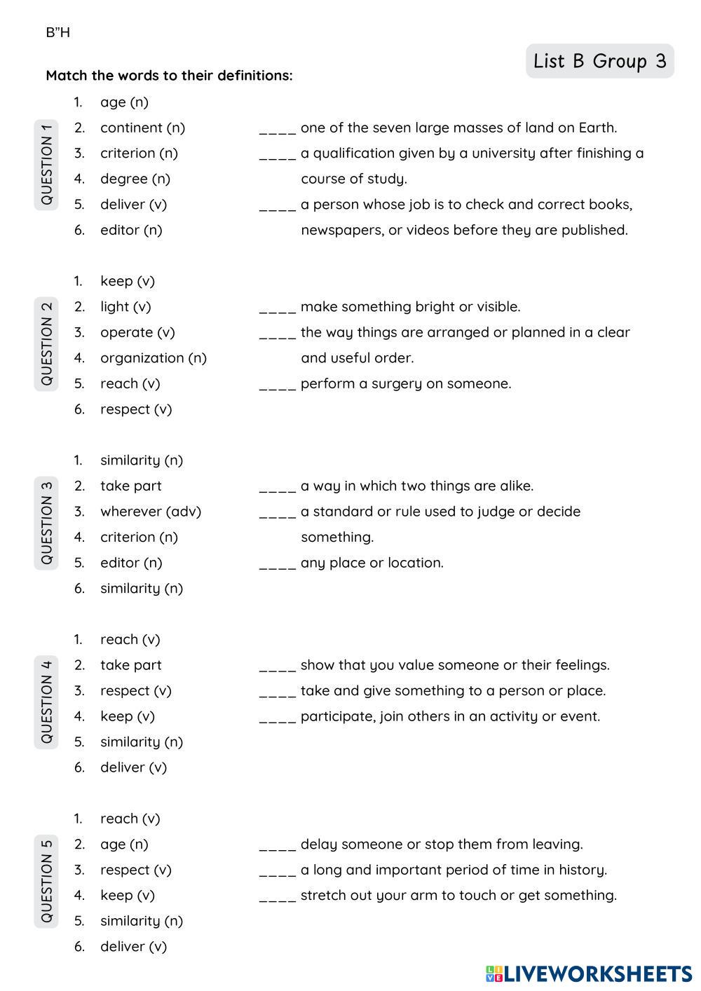 Created by Sharon770 Lengua y Literatura Bachillerato 4º de ESO Vocabulario English Instrucciones del autor LB G3 My Google Classroom Courses × 0 classes selected (0 students total) Quick Access Select all classes (0 classes) All Classes Loading courses... Cancelar Share Share to selected Course __COURSE_NAME__ __STUDENT_NAME__ (__STUDENT_EMAIL__) LB G3 Descargar Worksheet Validation Comprobar mis respuestas Emails my answers to my teacher Nombre completo Group/level Asignatura Teacher's email or key code Close Submit Validating worksheet... (12) Your answers have been sent to your teacher. Good luck! OK We encountered an error submitting your answers. Please try again. OK Anuncio | Ir sin anuncios Created by Sharon770 Lengua y Literatura Bachillerato 4º de ESO Vocabulario English Instrucciones del autor LB G3 Explora las hojas de trabajo LB G4 English Language 10th grade LB G4 Vocabulary - English Language LB G4 Unit 5 - test English Language 10th grade Unit 5 - test Vocabulary - English Language Read the instructions and do the tasks. vocab English Language 10th grade vocab Vocabulary - English Language Bài tập 1: Điền từ vựng thích hợp vào chỗ trống here and now 23.03 English Language 10th grade here and now 23.03 Vocabulary - English Language vocabulary