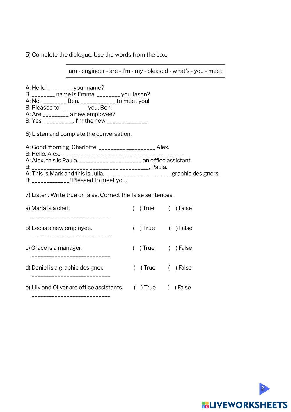 Created by Hosana Lengua y Literatura Bachillerato 2º de Bachillerato Vocabulario English Instrucciones del autor verb to be practice My Google Classroom Courses × 0 classes selected (0 students total) Quick Access Select all classes (0 classes) All Classes Loading courses... Cancelar Share Share to selected Course __COURSE_NAME__ __STUDENT_NAME__ (__STUDENT_EMAIL__) verb to be practice Descargar Worksheet Validation Comprobar mis respuestas Emails my answers to my teacher Nombre completo Group/level Asignatura Teacher's email or key code Close Submit Validating worksheet... (12) Your answers have been sent to your teacher. Good luck! OK We encountered an error submitting your answers. Please try again. OK Anuncio | Ir sin anuncios Created by Hosana Lengua y Literatura Bachillerato 2º de Bachillerato Vocabulario English Instrucciones del autor verb to be practice Explora las hojas de trabajo Can't hold us English Language 12th grade Can't hold us Vocabulary - English Language Fill the gaps Present and Past modal structures English Language 12th grade Present and Past modal structures Vocabulary - English Language Complete EXAM BOOSTER KEY R&W 1.1,2,3 English Language 12th grade EXAM BOOSTER KEY R&W 1.1,2,3 Vocabulary - English Language COMPLETE THE EXERCISES FOLLOWING RUBRICS Vocabulary 9 a English Language 12th grade Vocabulary 9 a Vocabulary - English Language Fill in the table with the correct form of the word.
