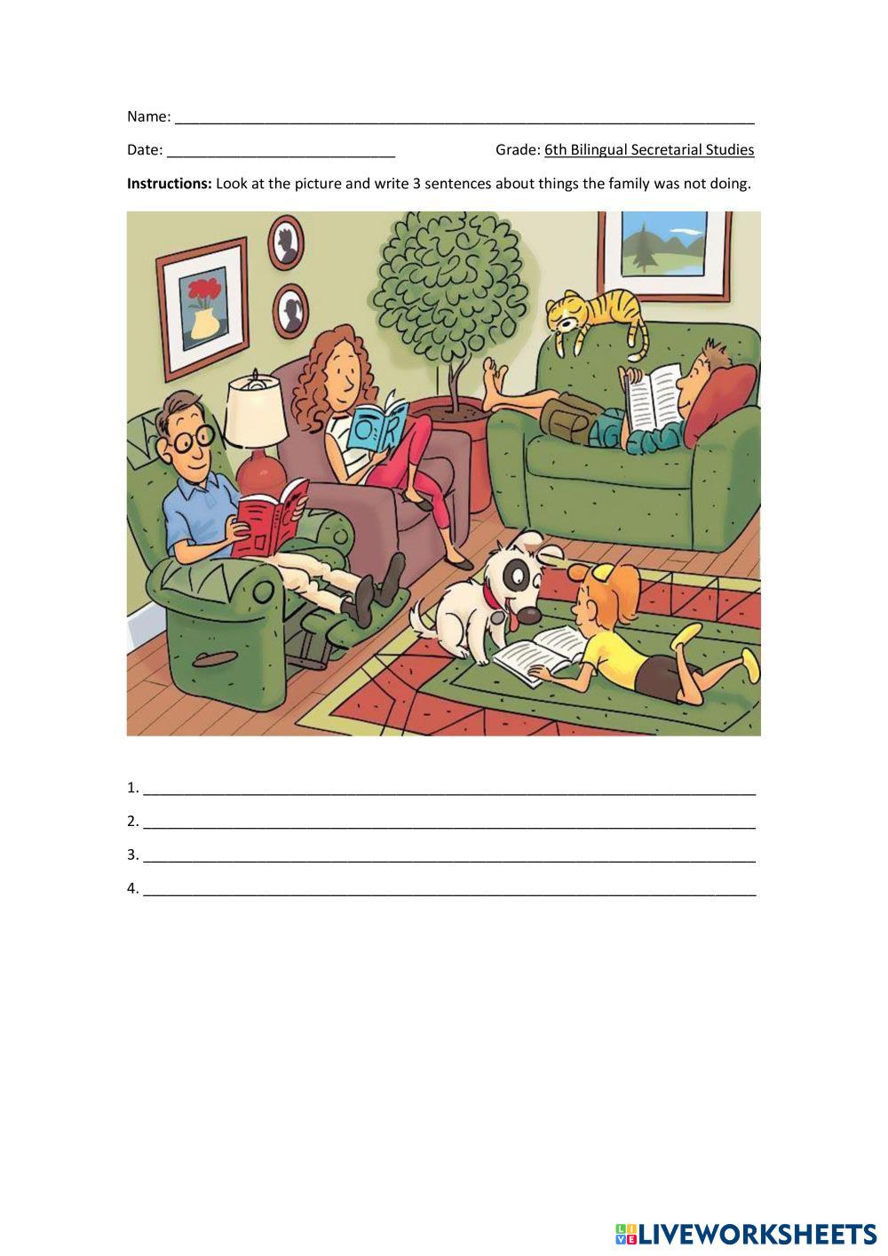 Look at the picture and write 3 sentences about things the family was not doing.