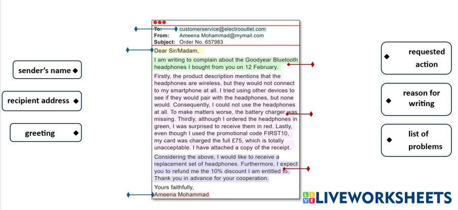 Match each part of the email with its correct name.