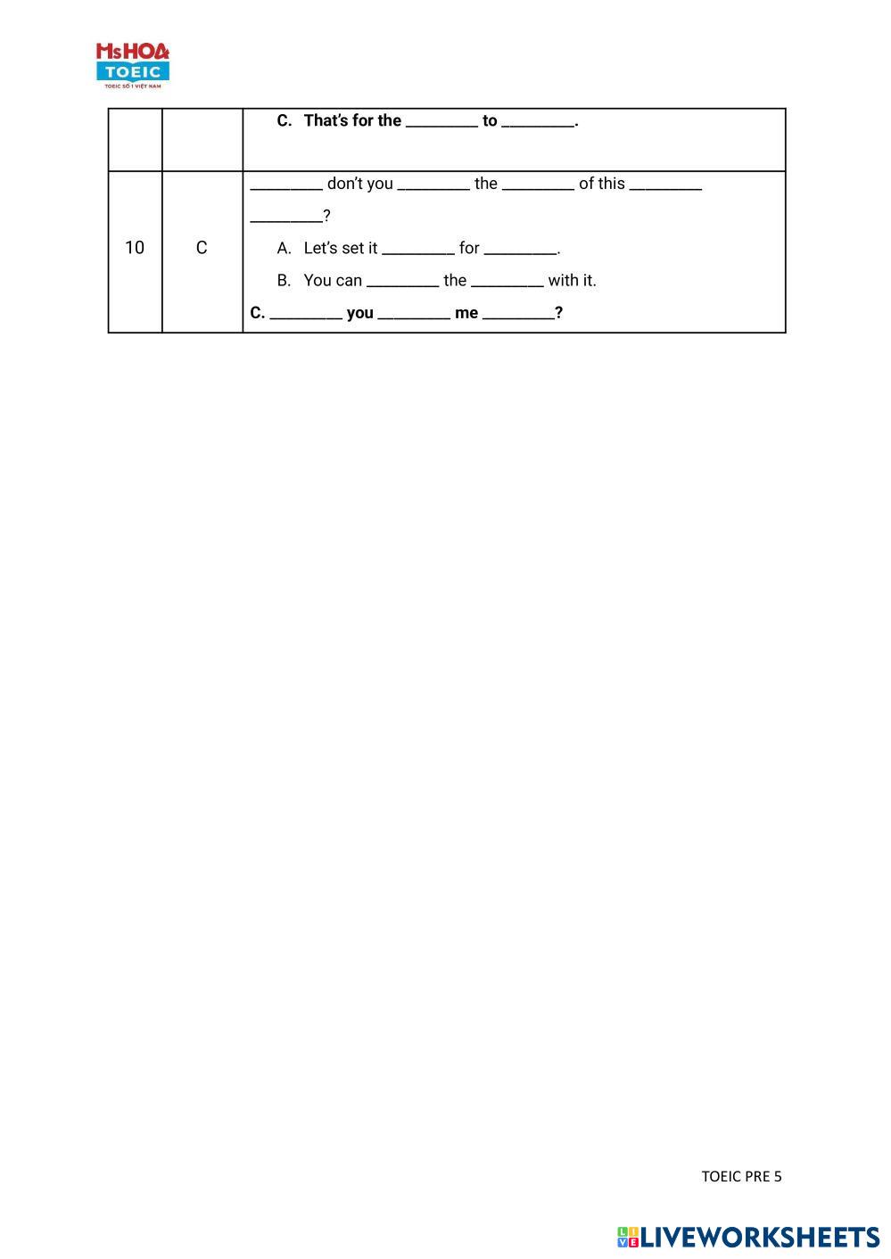 Nghe và điền vào ô trống
