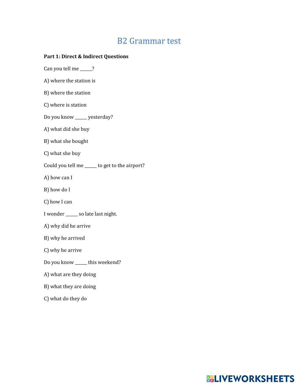Read the instructions carefully for each part of the test
